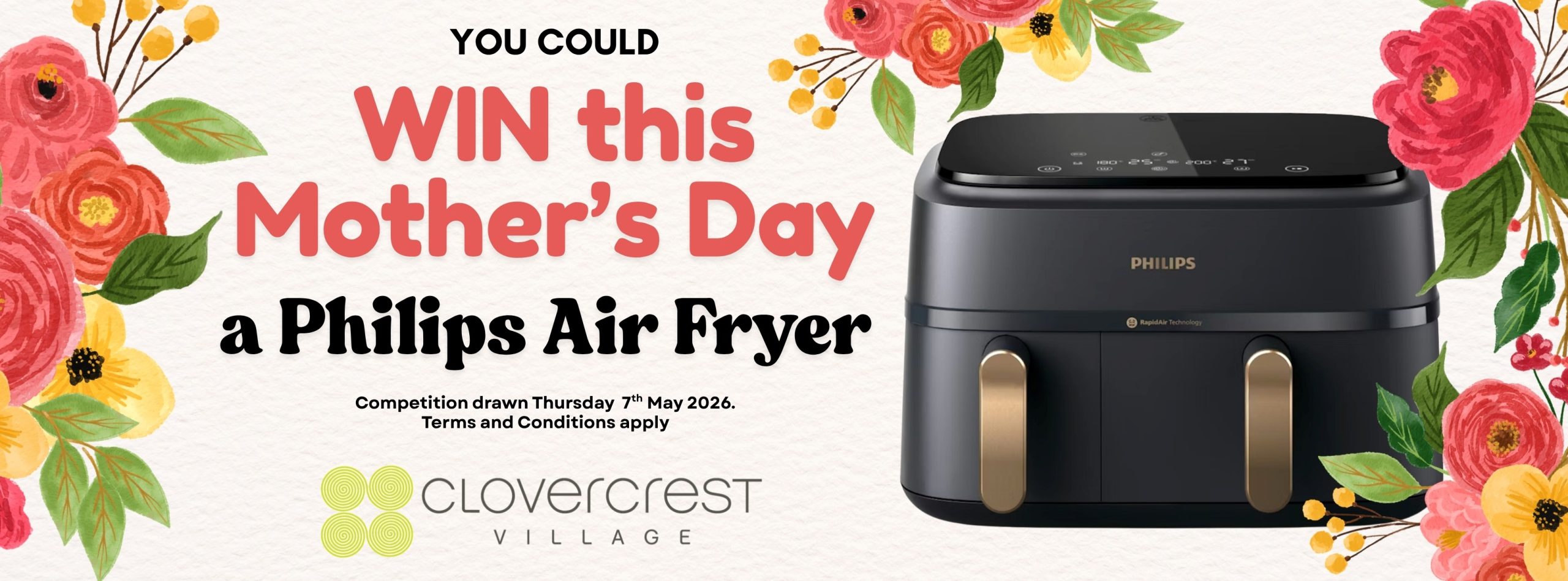 Conditions of entry: Competition closes and is drawn Thursday May 7th 2026. Winners will be notified by phone or email or if entered through Facebook, winner will be notified via Facebook Messenger. Must be 18 years or older to enter. Prize is not transferrable to cash. Traders, employees and their immediate families of Clovercrest Village are not eligible to enter. If winner is un-contactable by email or phone the prize will be redrawn. Prize to be collected by winner from Clovercrest Village